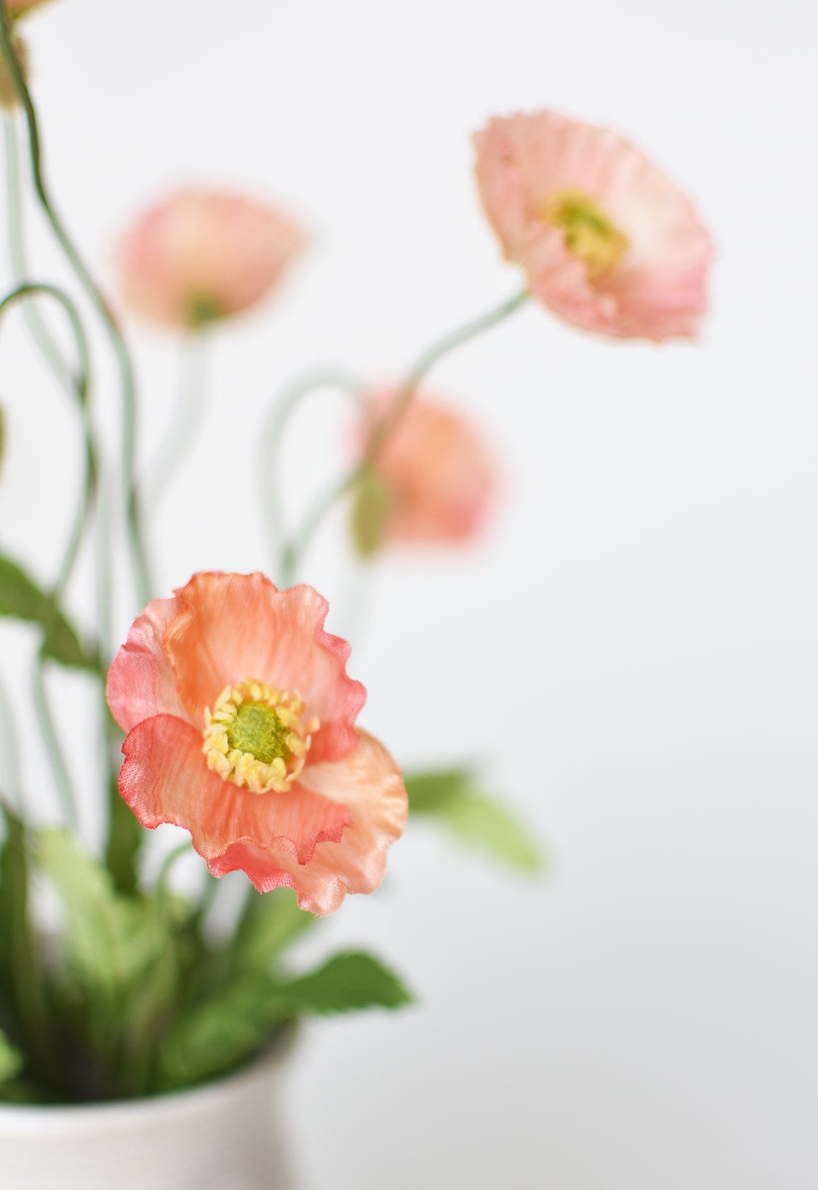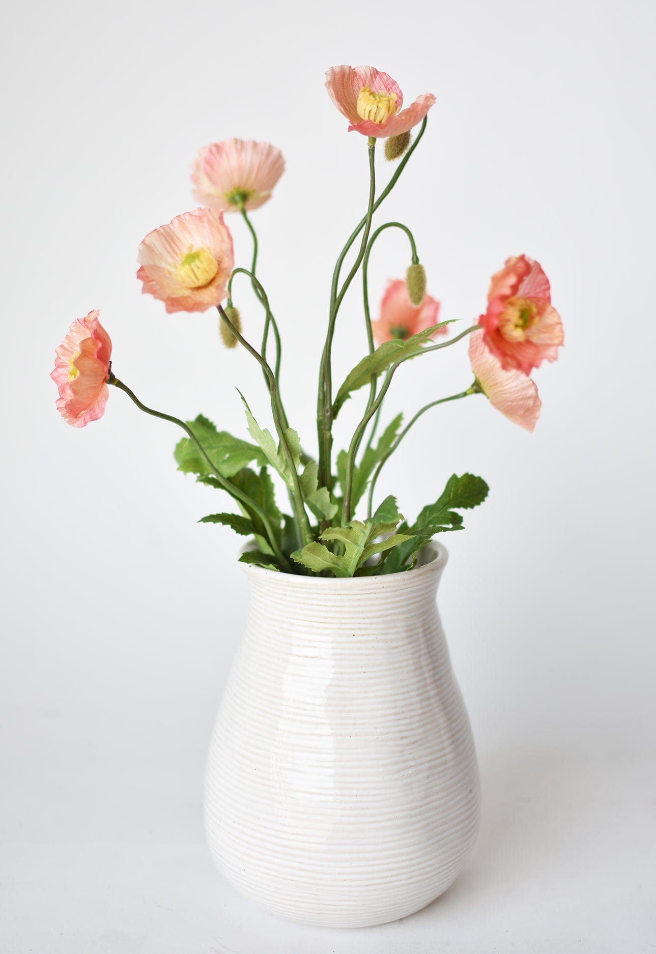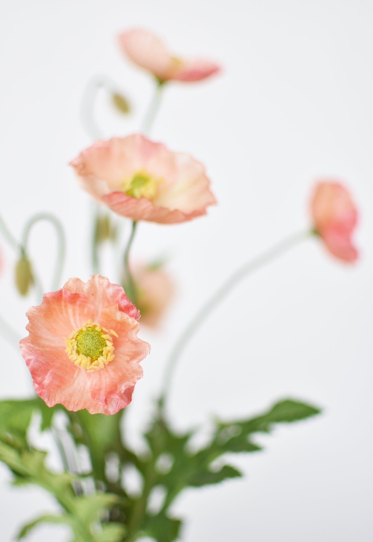 Brighten your home with the cheerful 15" Faux Poppy Bush. With its warm coral blooms and a cheerful vibe ready to bring a smile to your face, this happy bush is the perfect way to add a splash of color to your space.