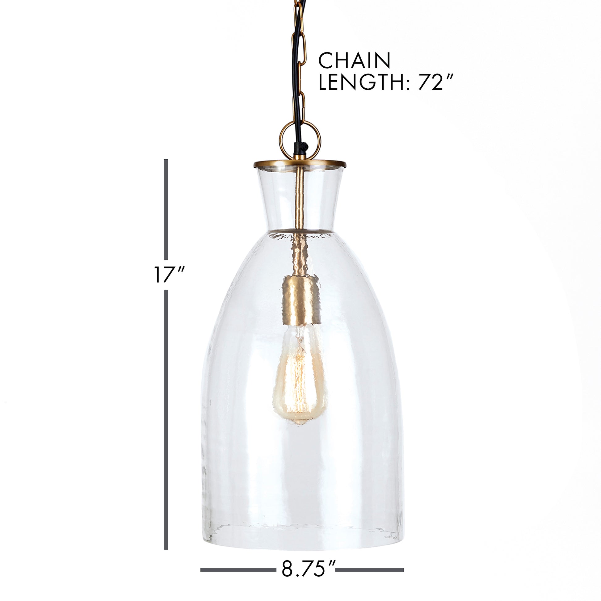 In a classic mix of warm brass and seeded glass, the Belle pendant is a traditional fixture. Over an island, in an entry or foyer, a solid choice.