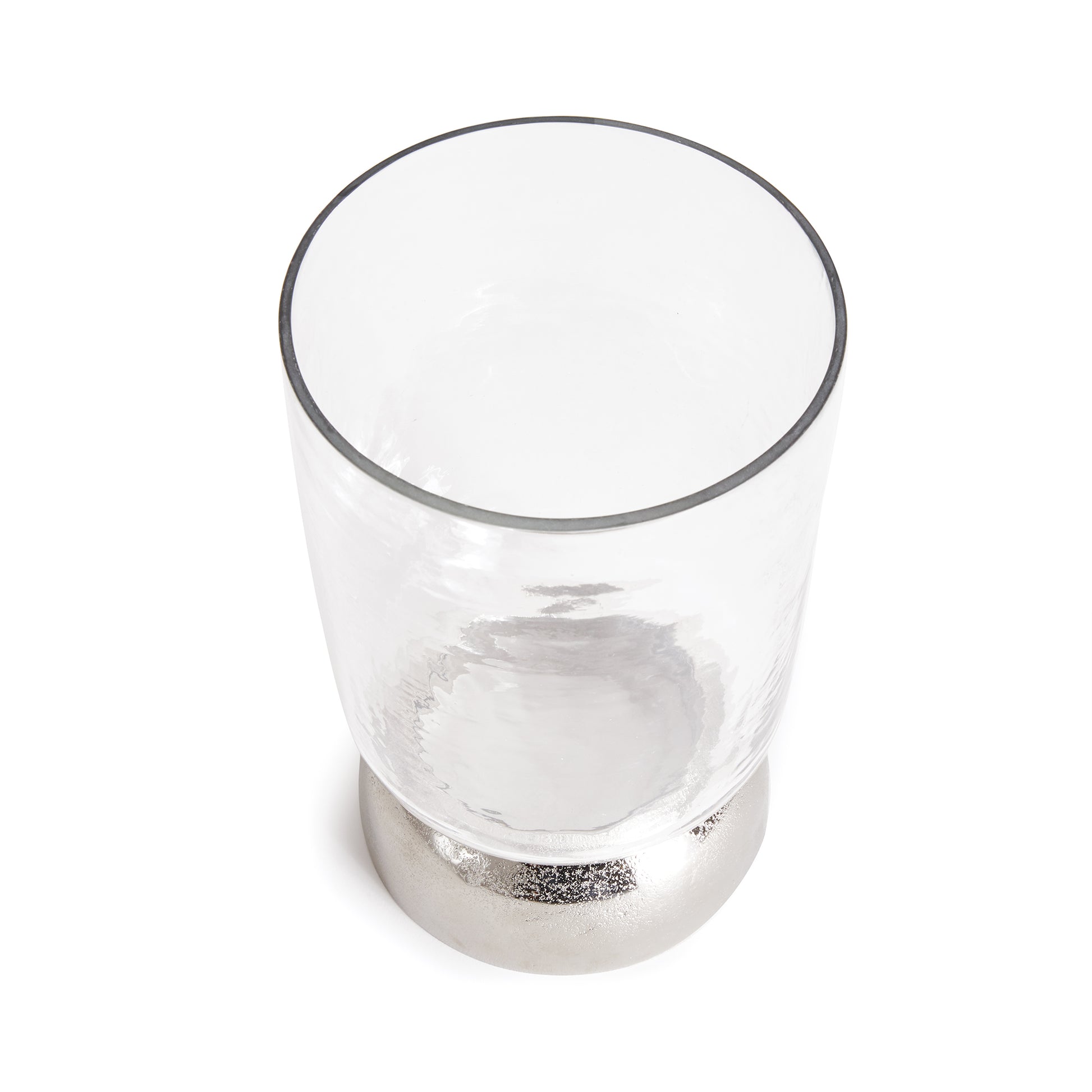 With a cool chrome finish and a domed base, this hurricane is a fresh accent for dining table, console or bookshelf. The hammered glass is sure to naturally enhance a candle's glow.
