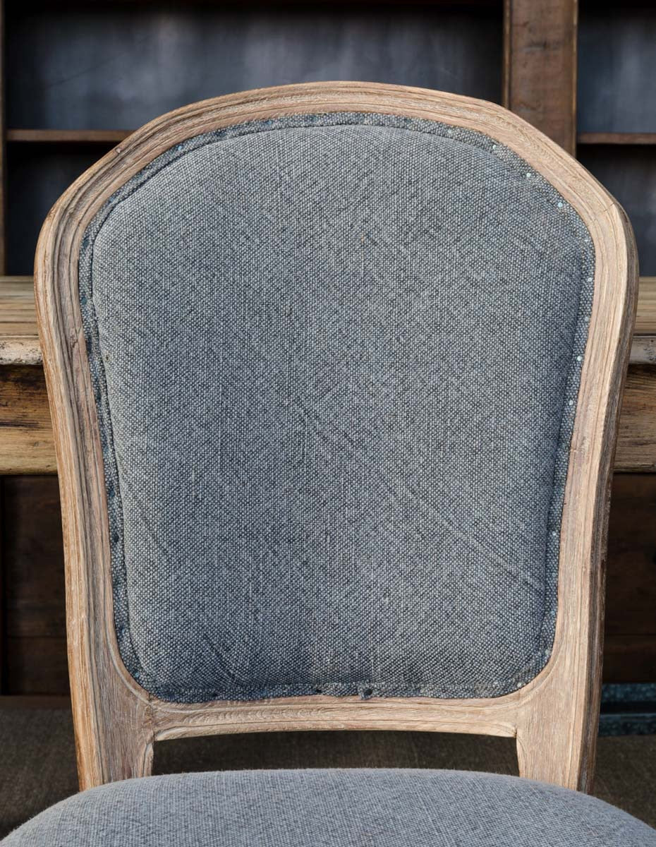 - Color & Finish: Lightly whitewashed oak finish with blue-gray cotton fabric