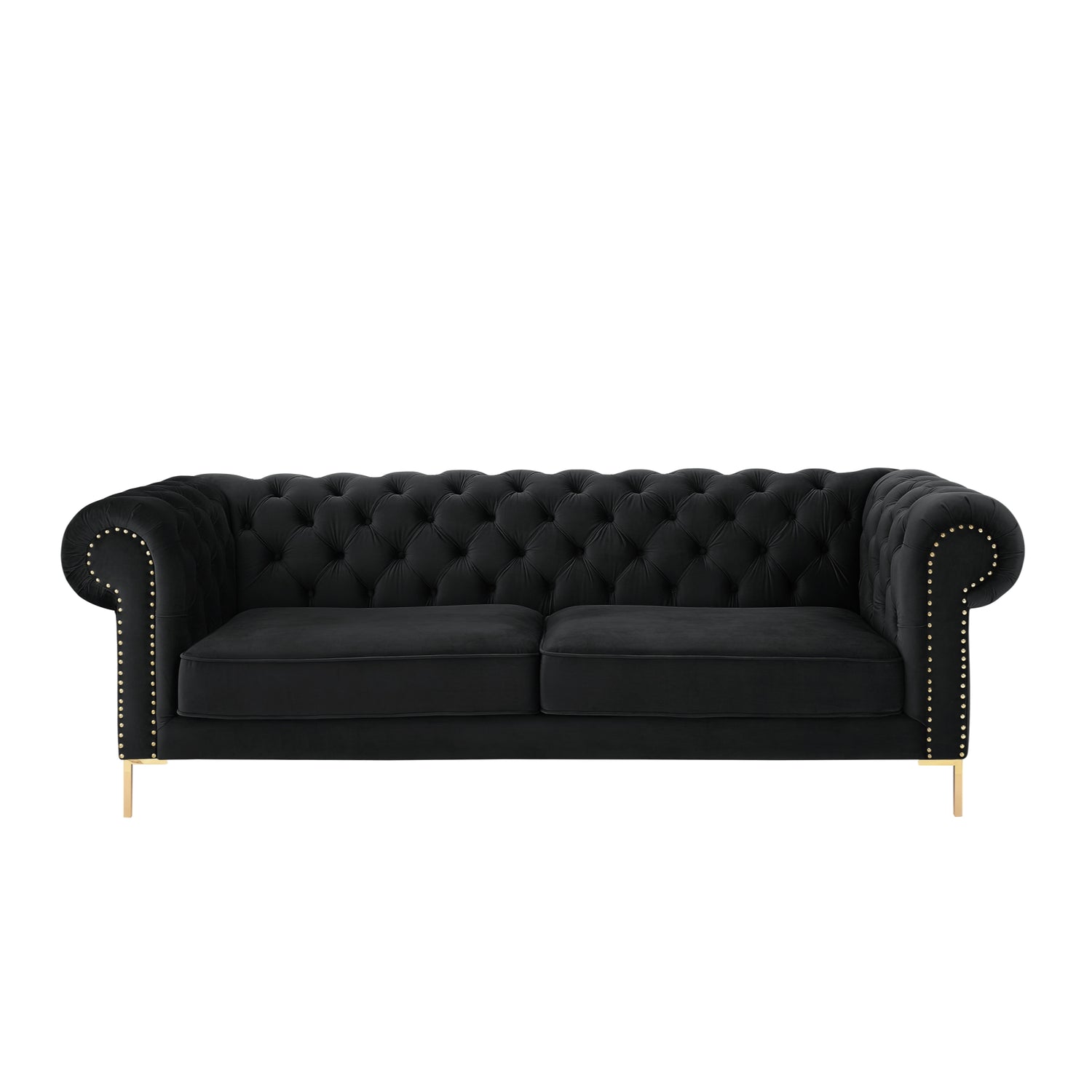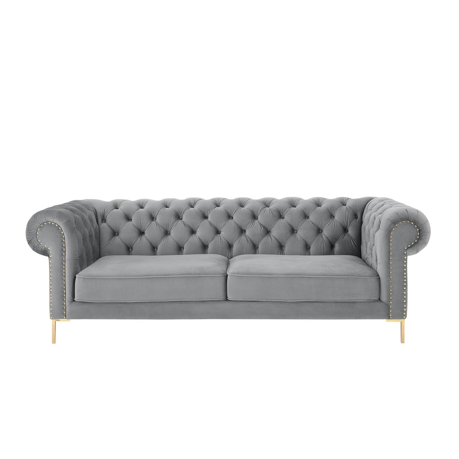 - LUXURIOUS DESIGN - This high-profile sofa is designed to impress with its button tufting, gold nailhead trim, rolled arms, and Y-legs. It is very balanced and durable. Thus, creating a modern, traditional or transitional feel to any space.
