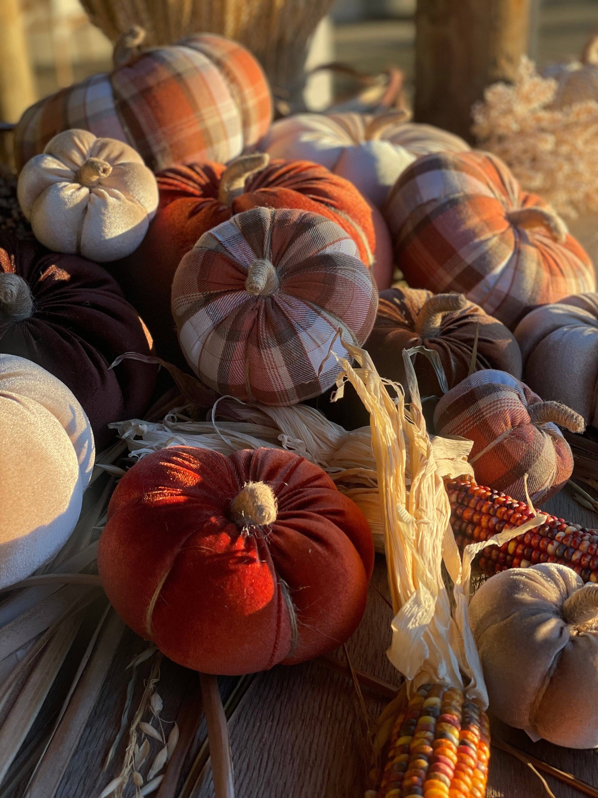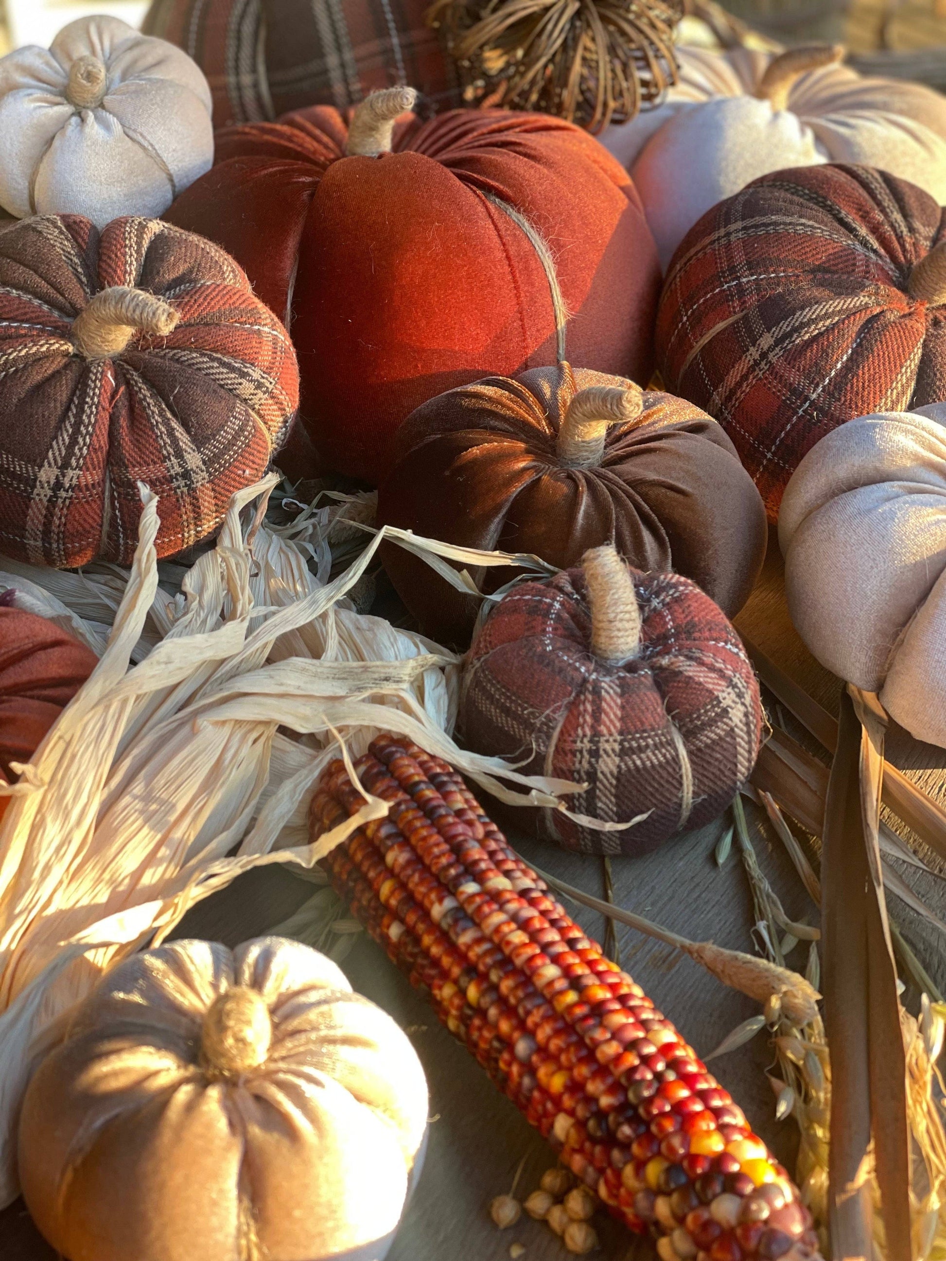 Plaid Fabric Stuffed Pumpkin with Jute Wrapped Stem
