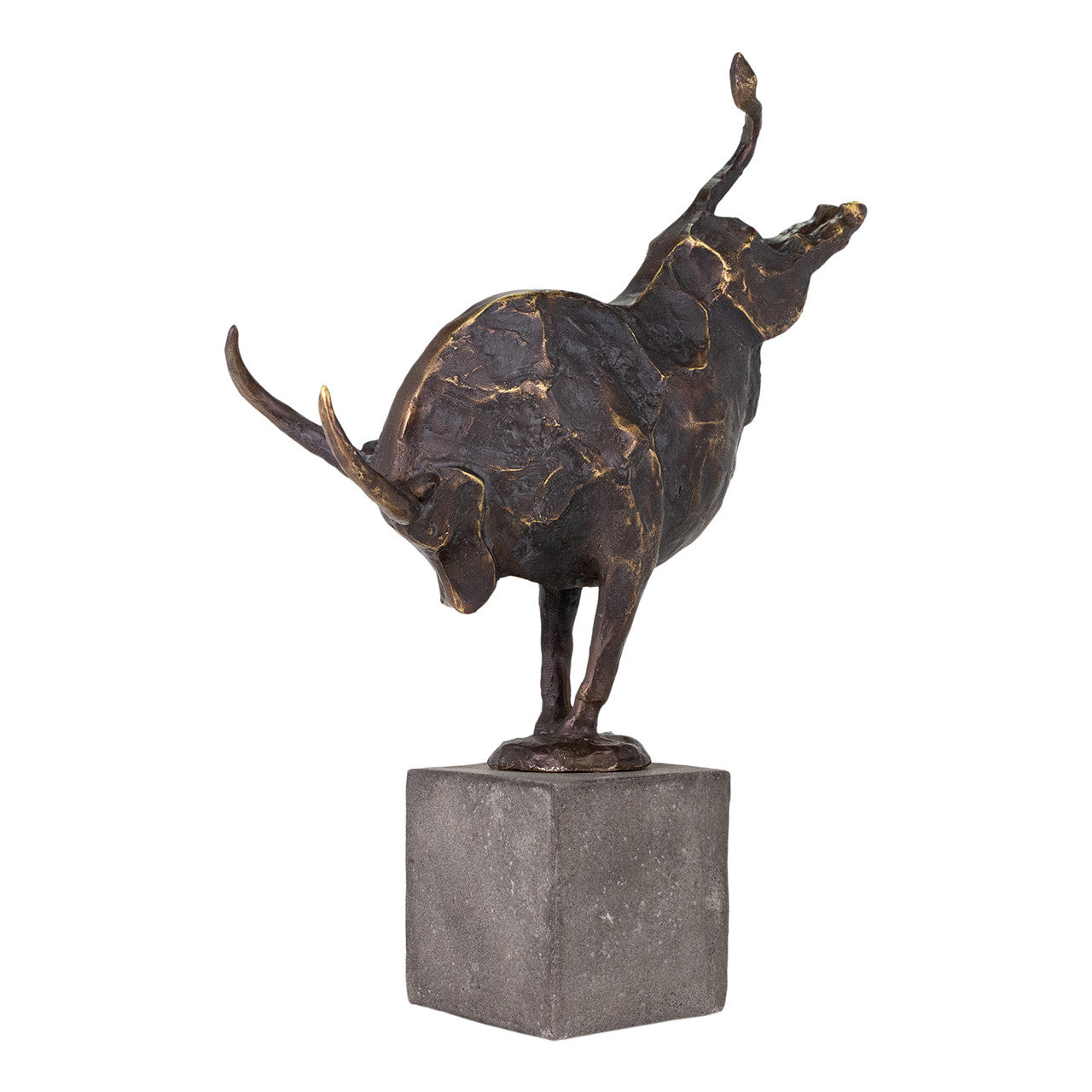 Bring a touch of elegance to your living space with the Dillinger Bull Sculpture. Crafted from durable bronze, this striking bull sculpture stands 15 inches tall and features intricate details that showcase the strength and grace of this magnificent animal. Its unique pose, with the bull on its front legs and hind legs in the air, adds a sense of drama and movement to any room. The Dillinger Bull Sculpture measures 12Lx4Wx15H.
