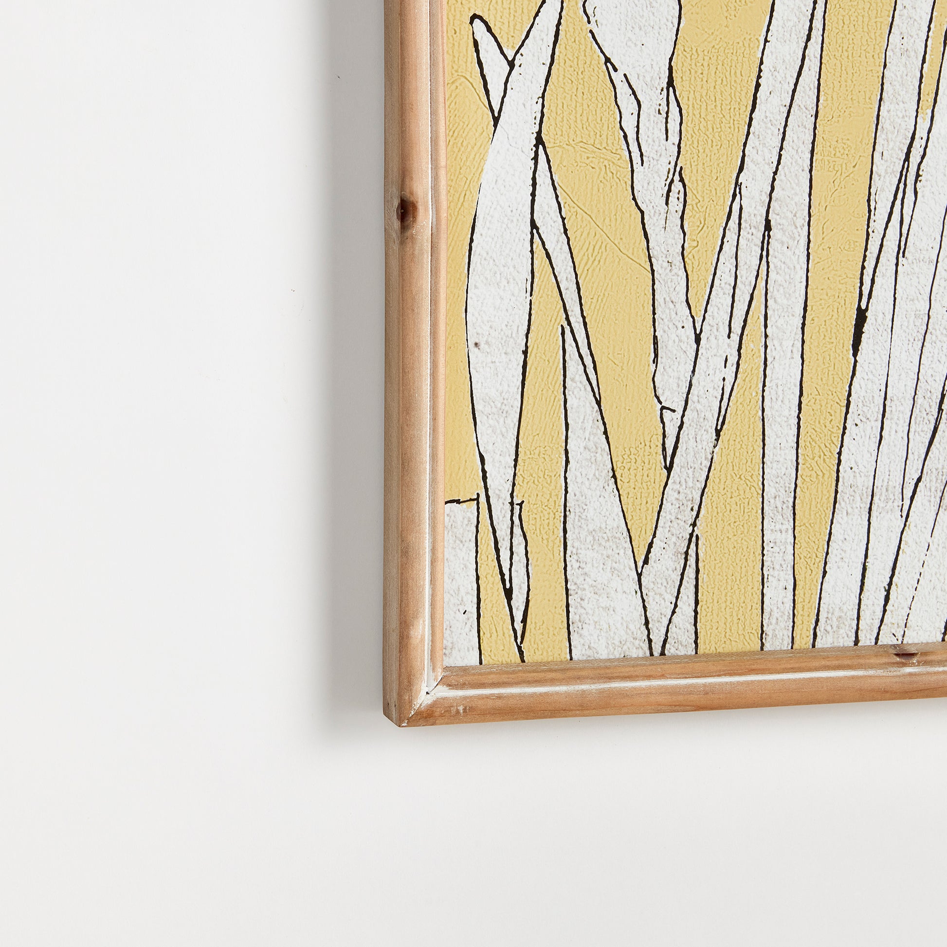The muted yellow background of these flowering amaryllis prints is a clever nod to the signature Aurora amaryllis. A modern take on a traditional botanical composition. This well scaled diptych is finished off with whitewashed wood frames.