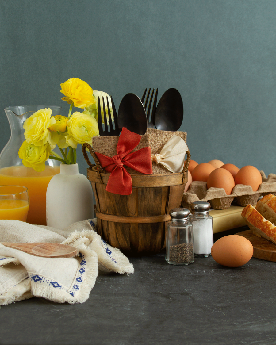 Our hand-tied ribbon silverware pouch adds festivity to any table decor. We love this style because it goes with just about everything. Perfect when you're dining alfresco or when you want to bring the outside in.