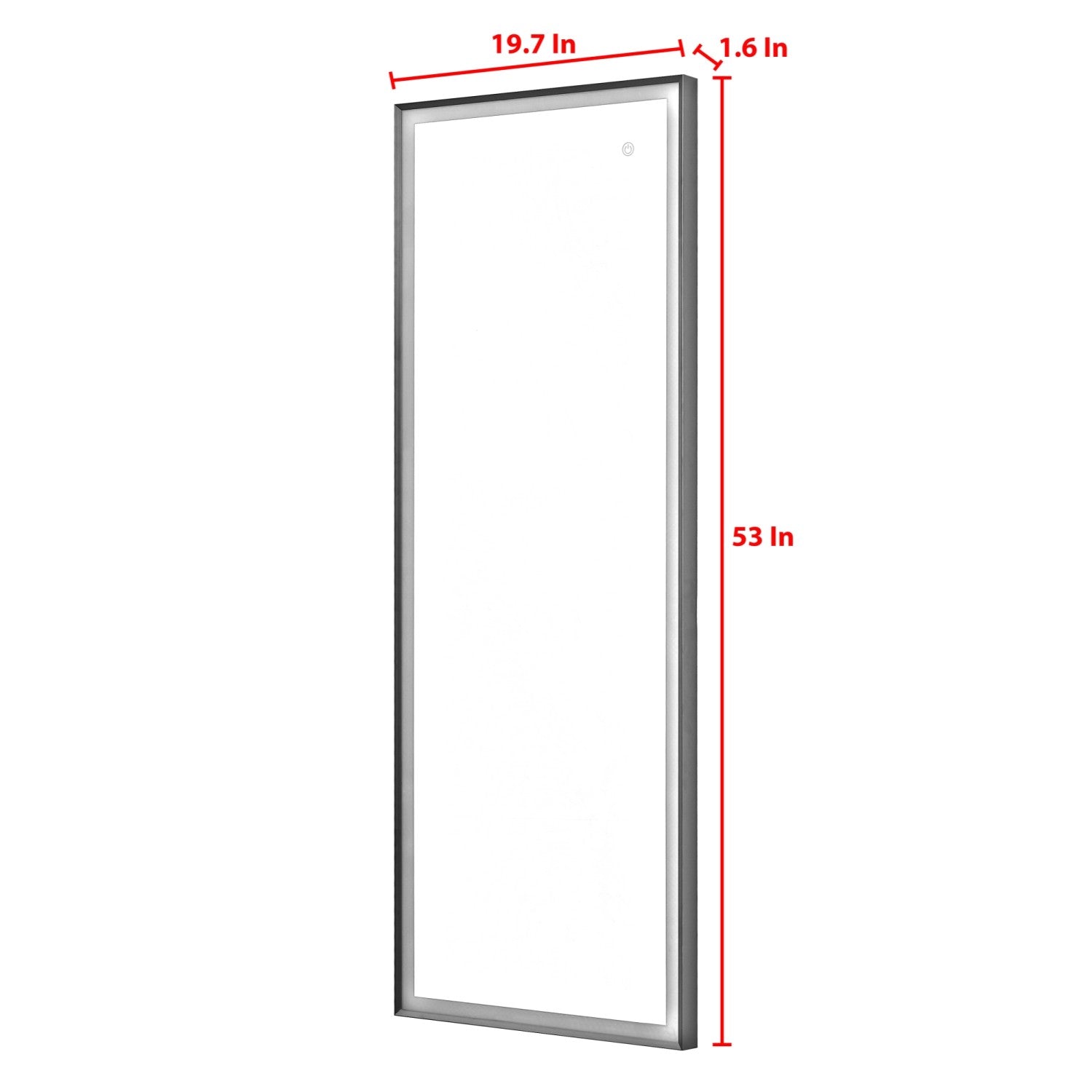 Always look your best while adding modern elegance to your space with our full-length rectangular mirror. Meticulously crafted using a combination of aluminum, MDF, and glass, this mirror exudes contemporary style. The intuitive touch sensor allows you to effortlessly adjust dimmable LED lights, creating the perfect ambiance for any occasion. Its sturdy aluminum structure ensures long-lasting performance and rust resistance, while the versatile design allows you to lean it against the wall or easily mount it. With two hooks included, it effortlessly enhances the aesthetic of your bedroom, living room, entryway, makeup room, or powder room. No assembly is required, simply unwrap, and enjoy the expansive reflection of your entire body. Capture stunning mirror selfies with the smart touch dimmable light feature. Rest assured, your mirror will arrive in premium packaging, ensuring its protection during transit. Experience the perfect blend of style and functionality with this chic and practical mirror, designed to complement any space.