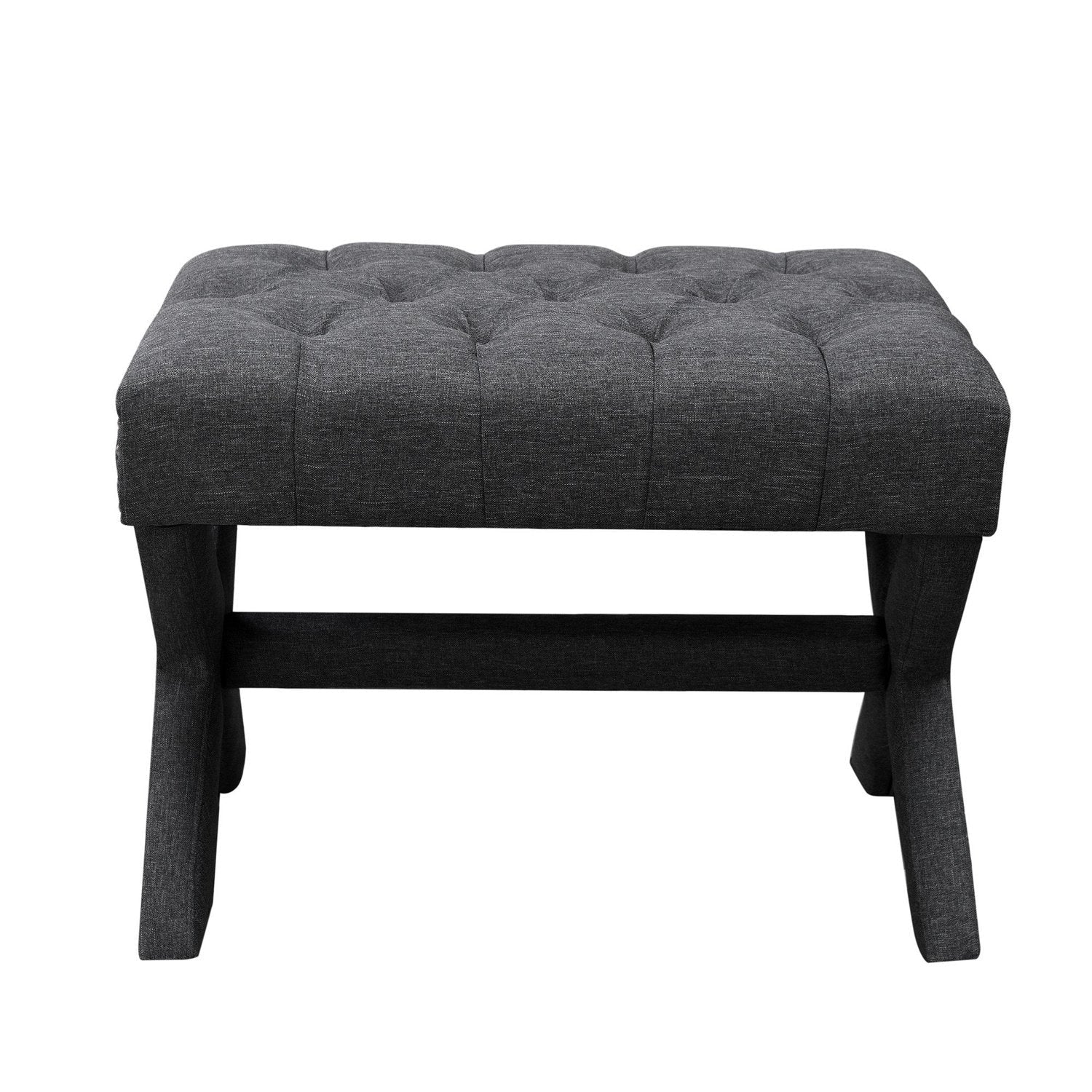 - ELEGANT DESIGN - Traditional style Ottoman w/ Modern appeal, Handcrafted Upholstered tufting with linen fabric , Stylish Solid birch X-Leg design.