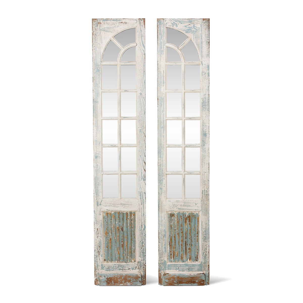 Mirrored Sidelights Set of 2 | Antique White & Blue Wall Accent