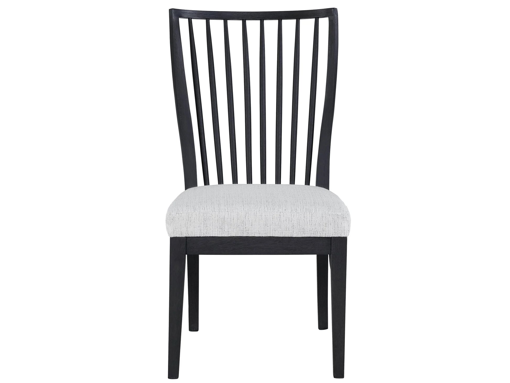 Charcoal finish, the Bowen Side Chair features a clean line, a contemporary spindle back and an upholstered seat, creating a modern yet classic seating option.