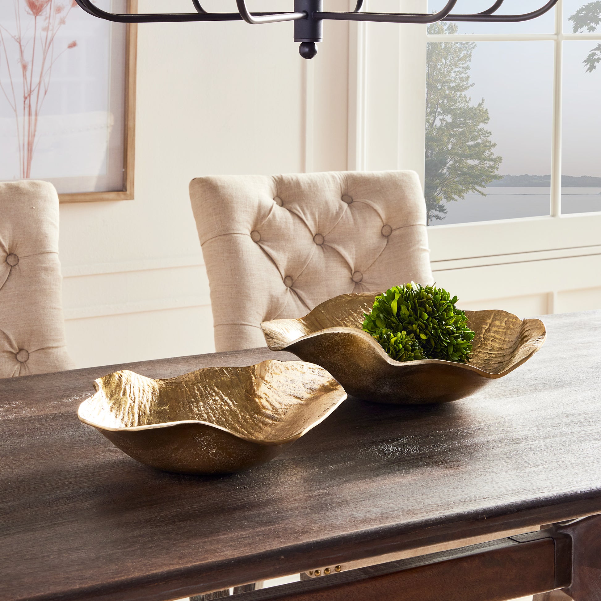 With flowing, wispy forms you'd never know this set of decorative bowls are made of a sturdy cast aluminum. Perfect for some natural fillers or quite lovely all on their own.