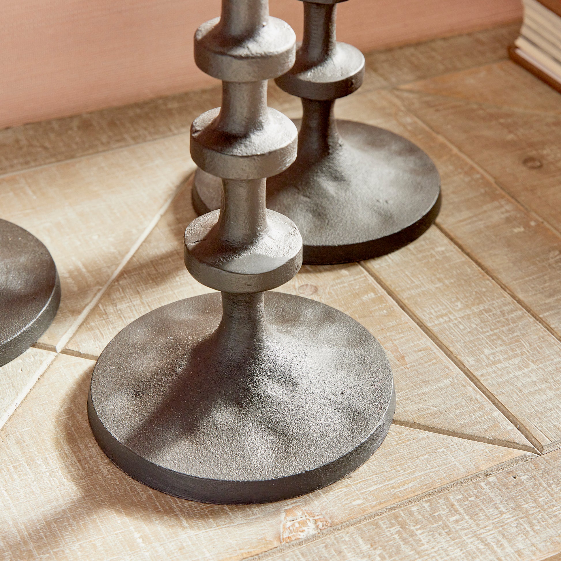 Elevate your decor with these elegant and grandiose taper holders, perfect for showcasing on a mantel or in a luxurious front entryway. Inspired by the traditional abacus, the subtle ridges on the stem add a contemporary twist, creating a perfect blend of modern and classic.
