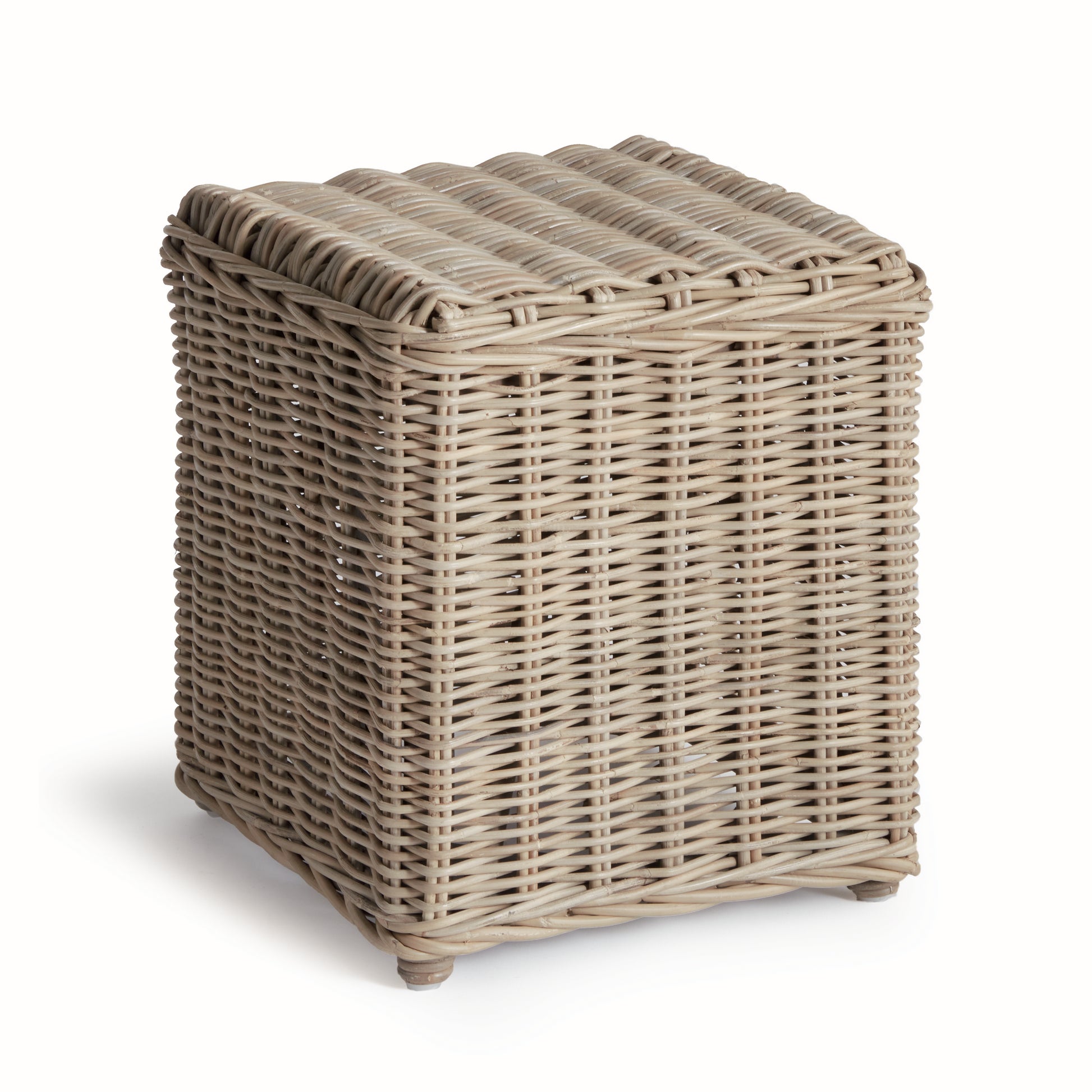 The distinctive warm gray finish of this woven Kubu rattan stool is achieved by soaking it in mud and allowing it to sun dry naturally. Inside the woven design is a wood structure made with durability in mind. A great scale for use as a side table or large stool.