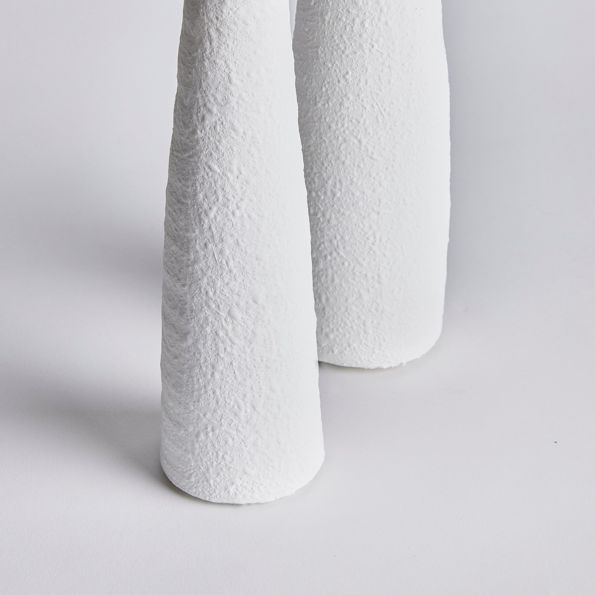 Simple in form with a modern aesthetic, these candlestands are the epitome of less is more. Designed to fit tapers or pillars and finished in a white matte glaze, they bring a calm, tranquil feel to any modern space.
