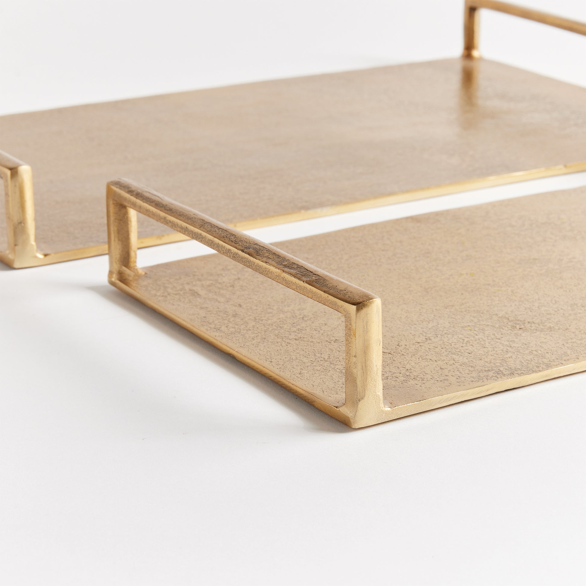 This set of cast aluminum trays are a beautiful way to display a special accent, vase or candleholders. Substantial in size, and full of rich texture, they're also lovely all on their own.
