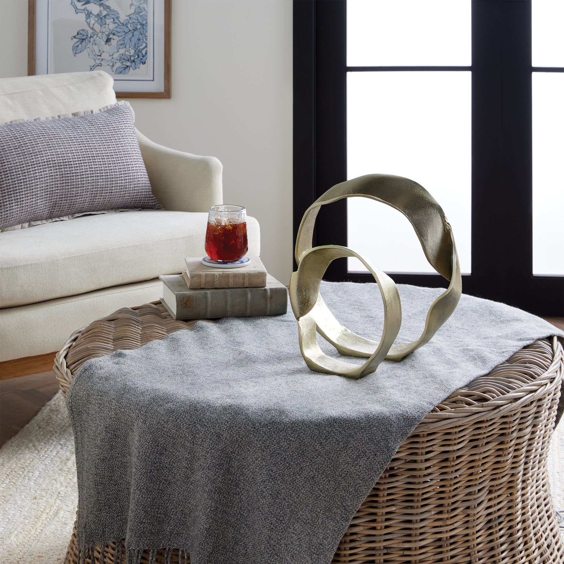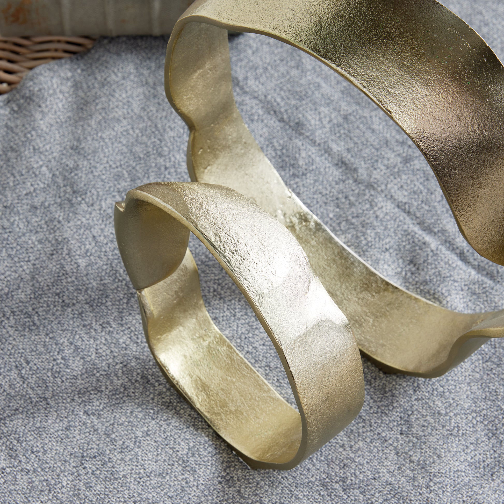 A textured champagne gold finish and sculptural shapes make this pair of cast aluminum sculptures unique. A contemporary touch for home office or den, in a book shelf, or styled in a tray on an ottoman.