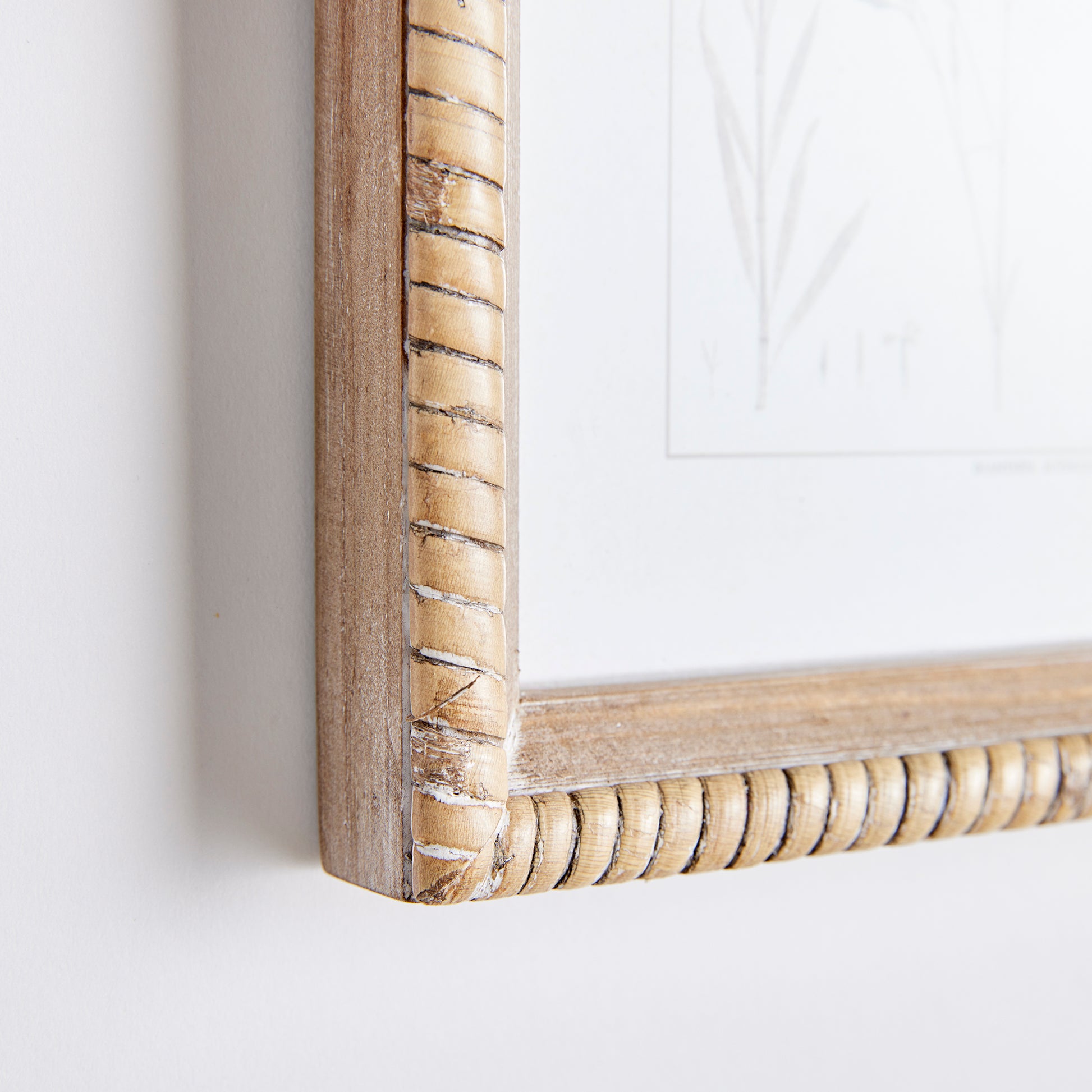 These traditional sepia botanical prints are complemented with rattan wood frames. This handsome set of nine was carefully curated to create a stunning salon style arrangement, but can also be split up into sets for smaller spaces. A traditional choice for home office or study.