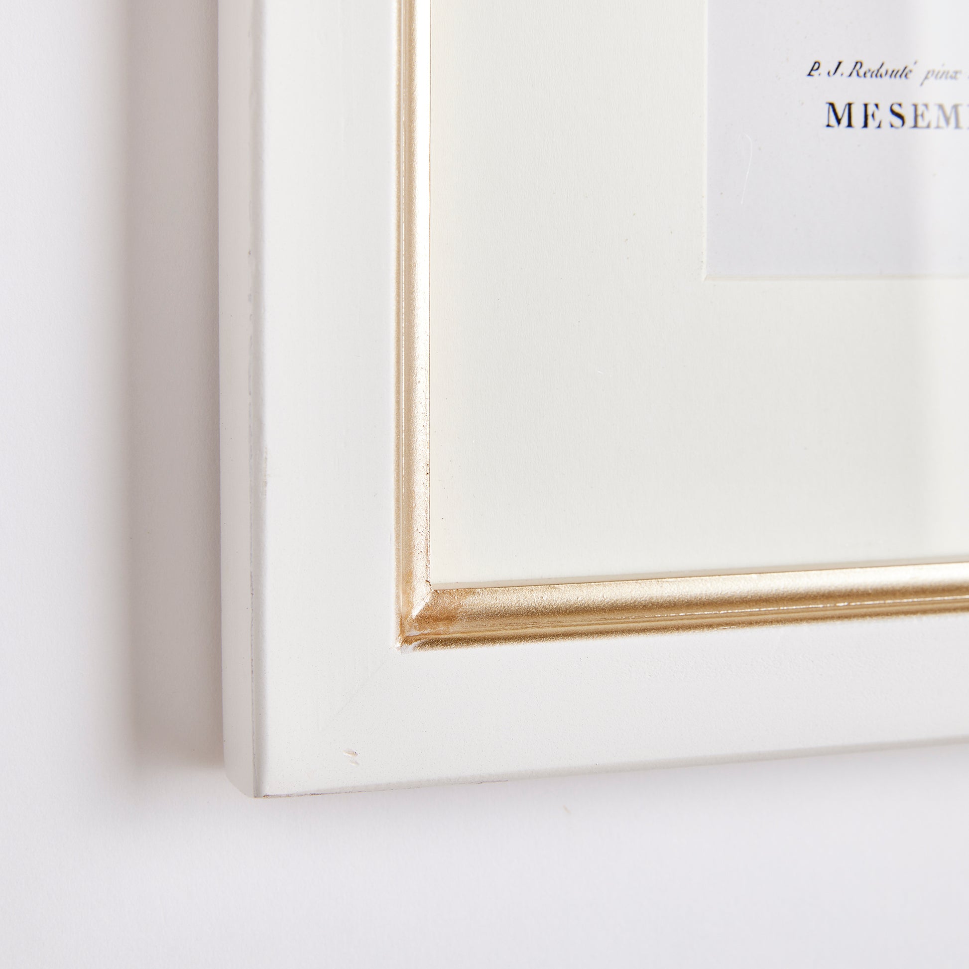 This set of coordinating flowers in blush tones is a traditional collection. Finished off with white wood frames with a gold detail, adding a formal feel. A beautiful way to furnish home office, study or entry.