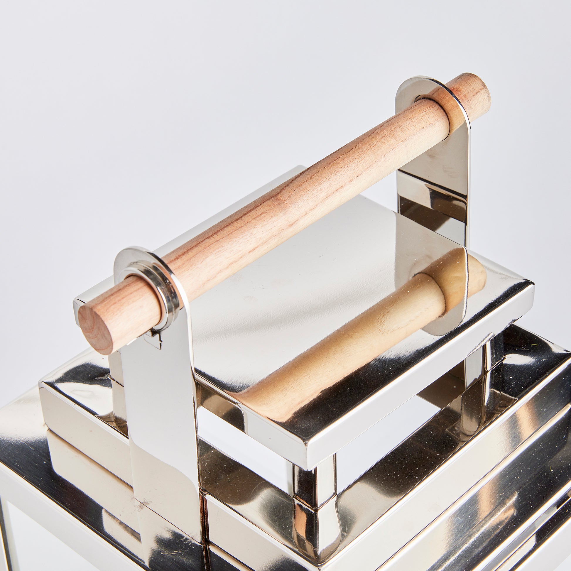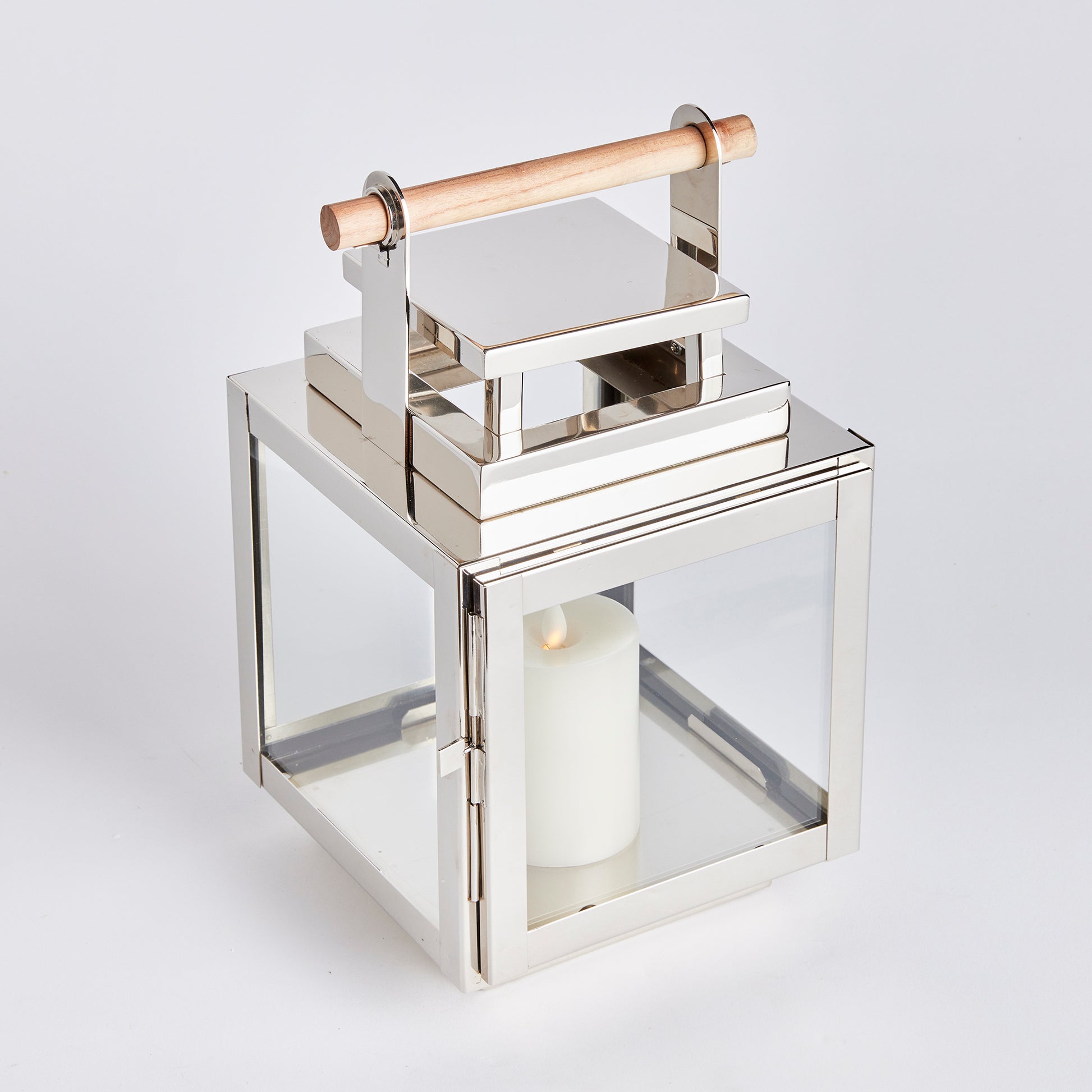 With a teak handle, wide glass panes and tailored square profile, this outdoor lantern is a handsome look for patio, porch or lanai. An exclusive chrome design you won't see anywhere else.