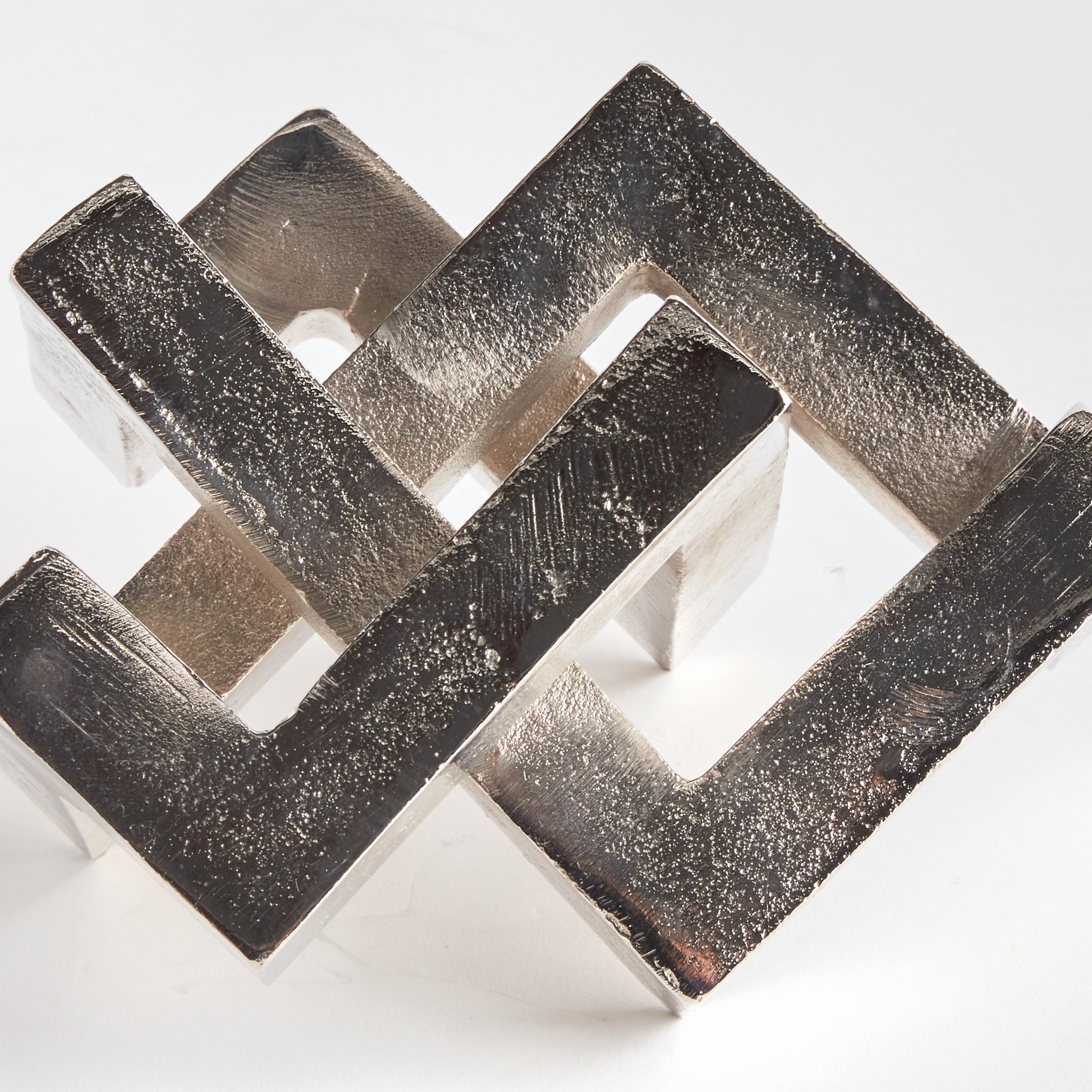 A geometric marvel, this linear sculpture is a strong, substantial accent in a silver finish. Place atop a stack of books or nestled in a bookshelf for a modern touch.