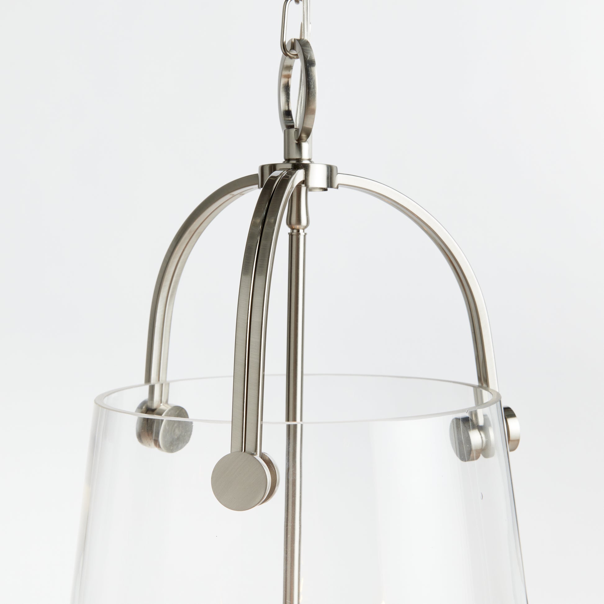 Made of a custom glass mold, this pendant is well proportioned. In a clever design decision, the top silver metal detail goes through the glass, creating a unique look.