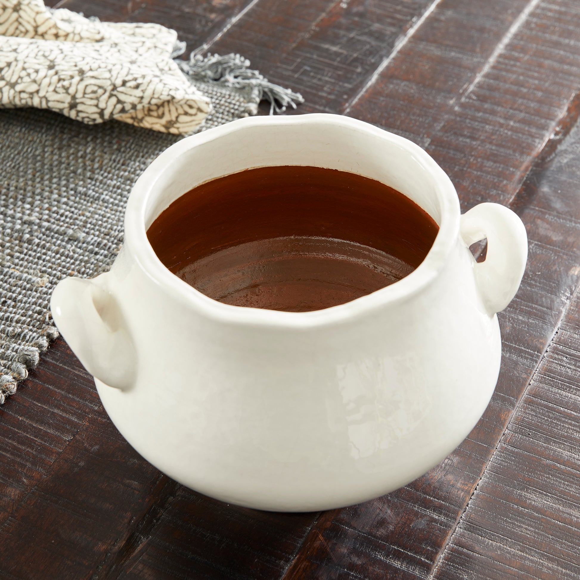 | Decorative interior use only. Do not use with water or plant directly into. Use only with inner pot or liner. Do not use harsh chemicals. | 10.75 x 9.25 x 7 |