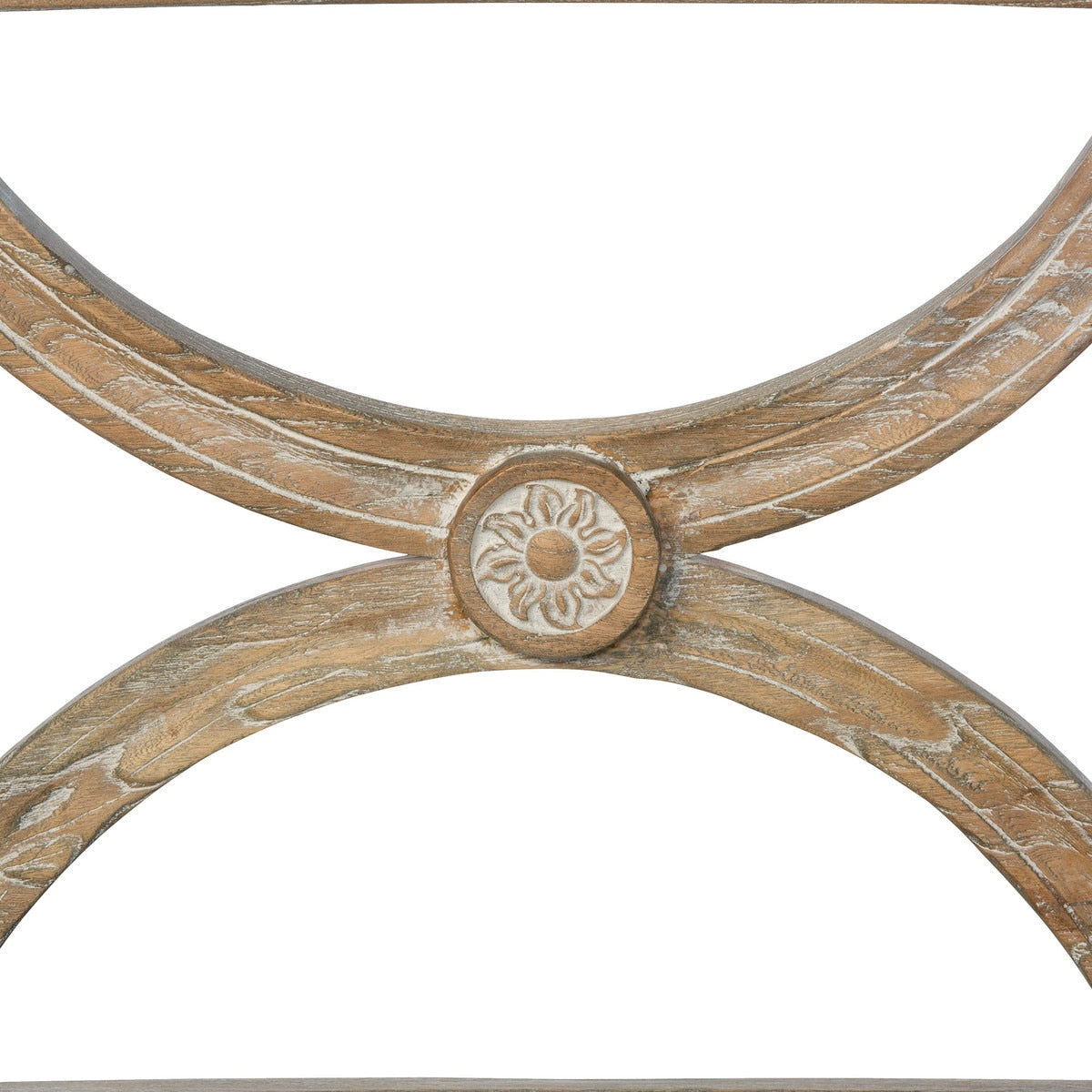 - Color & Finish: Lightly whitewashed finish with pale gray upholstery