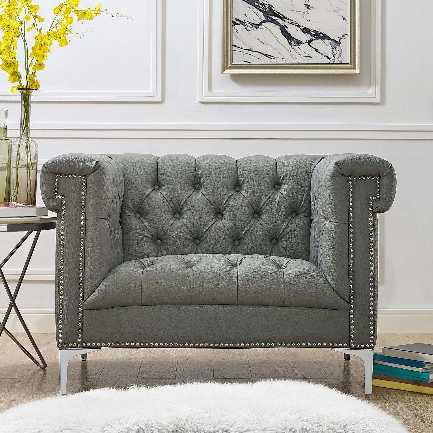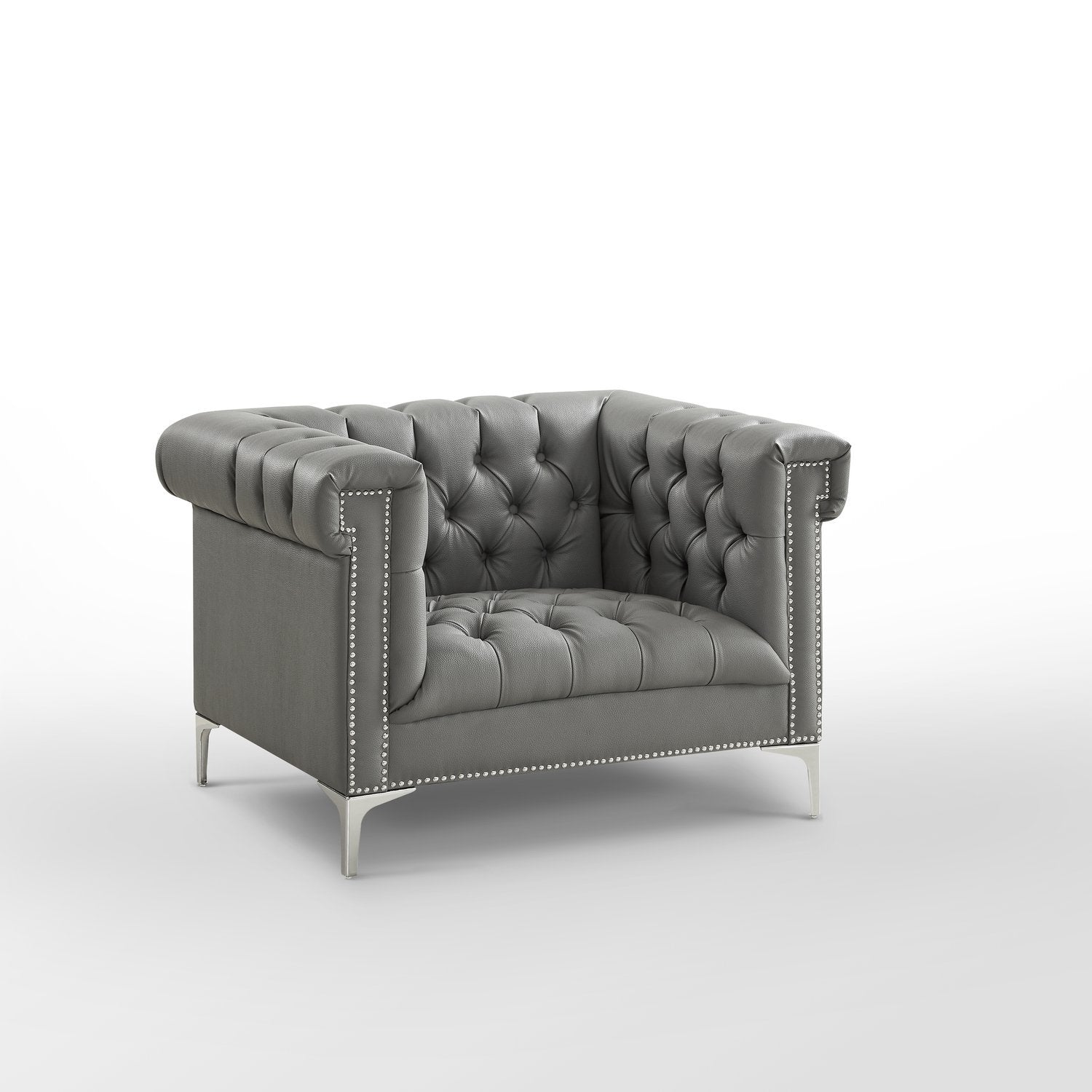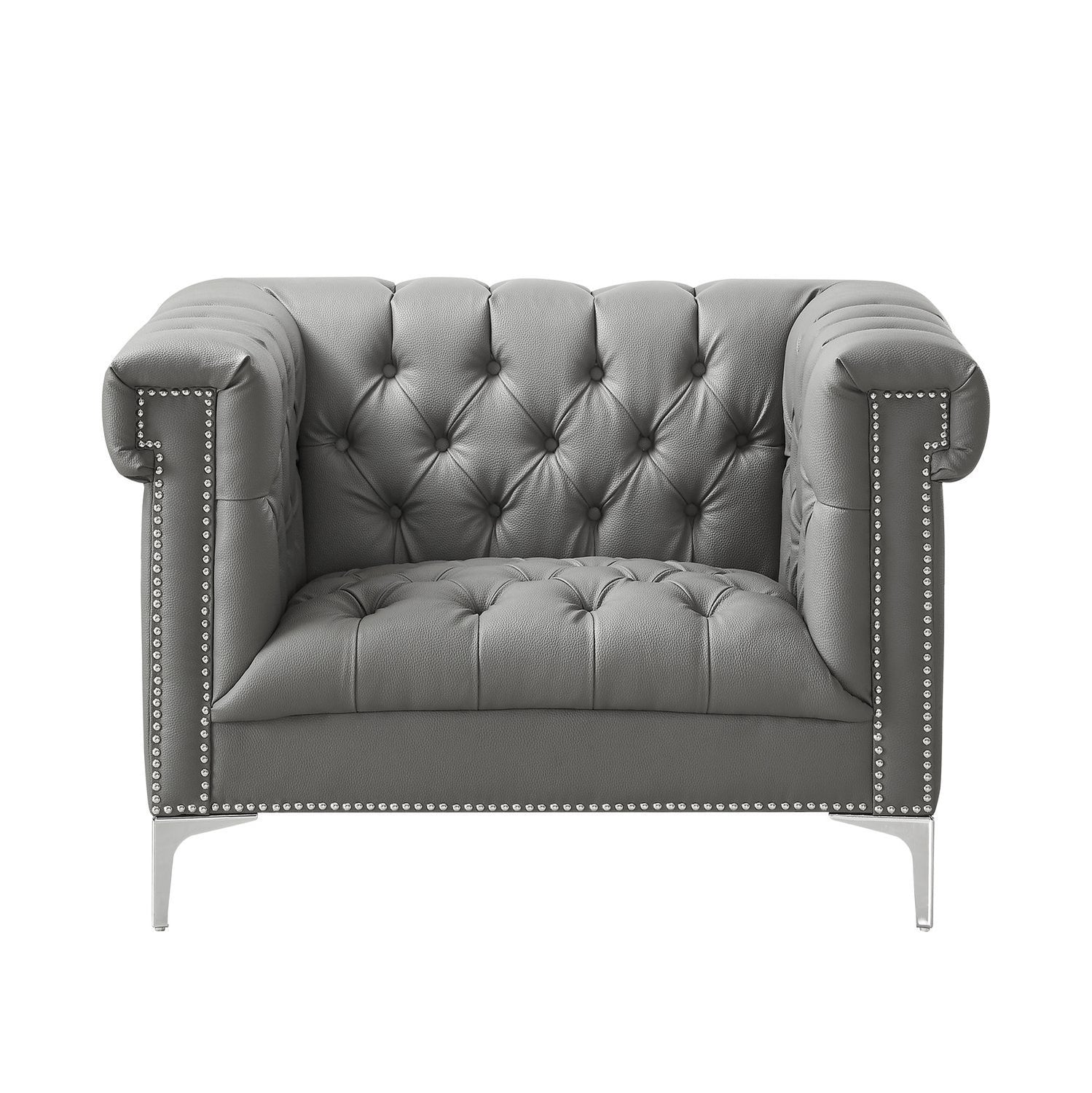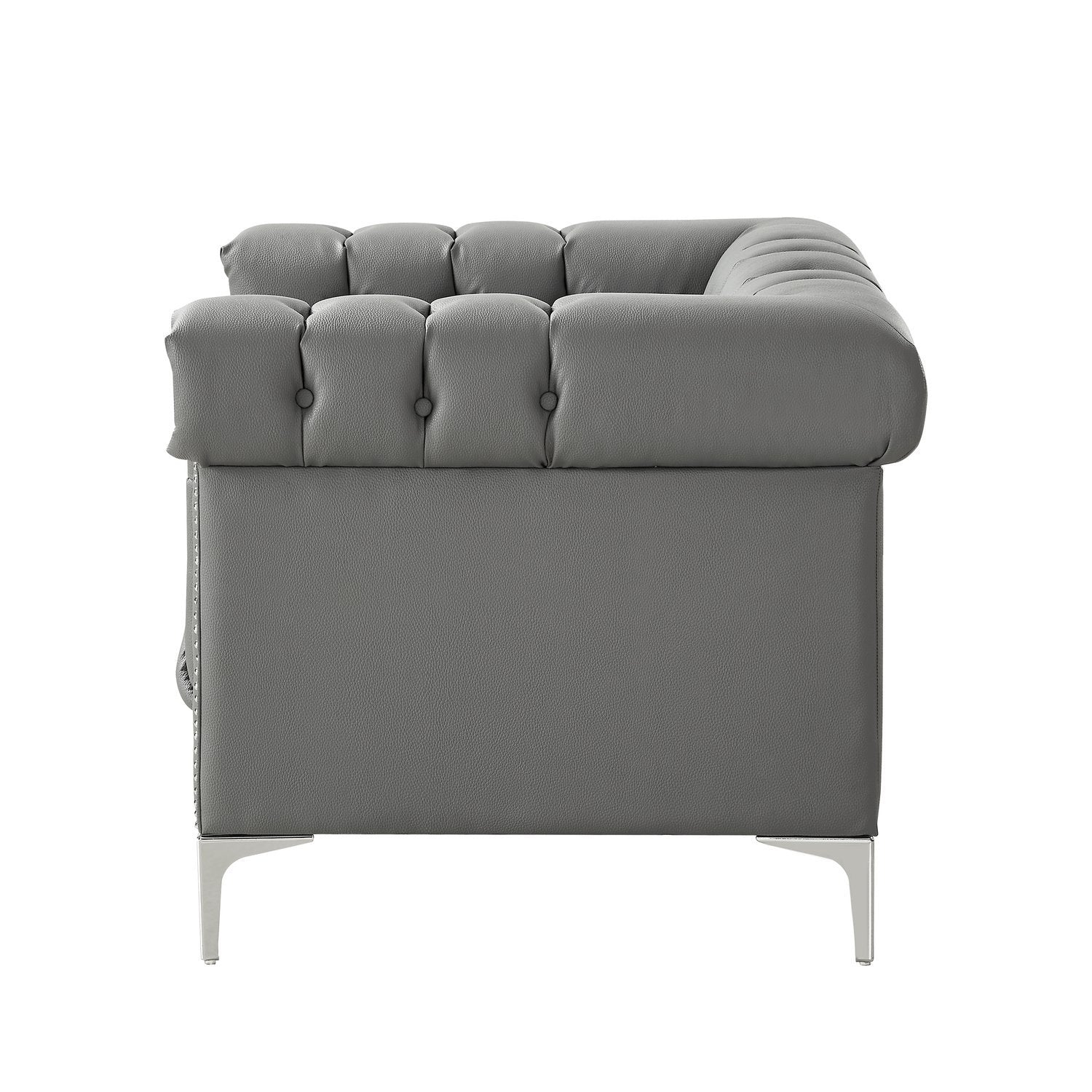- ATTRIBUTES: Button Tufted, Silver Nailhead Trim, Y-leg