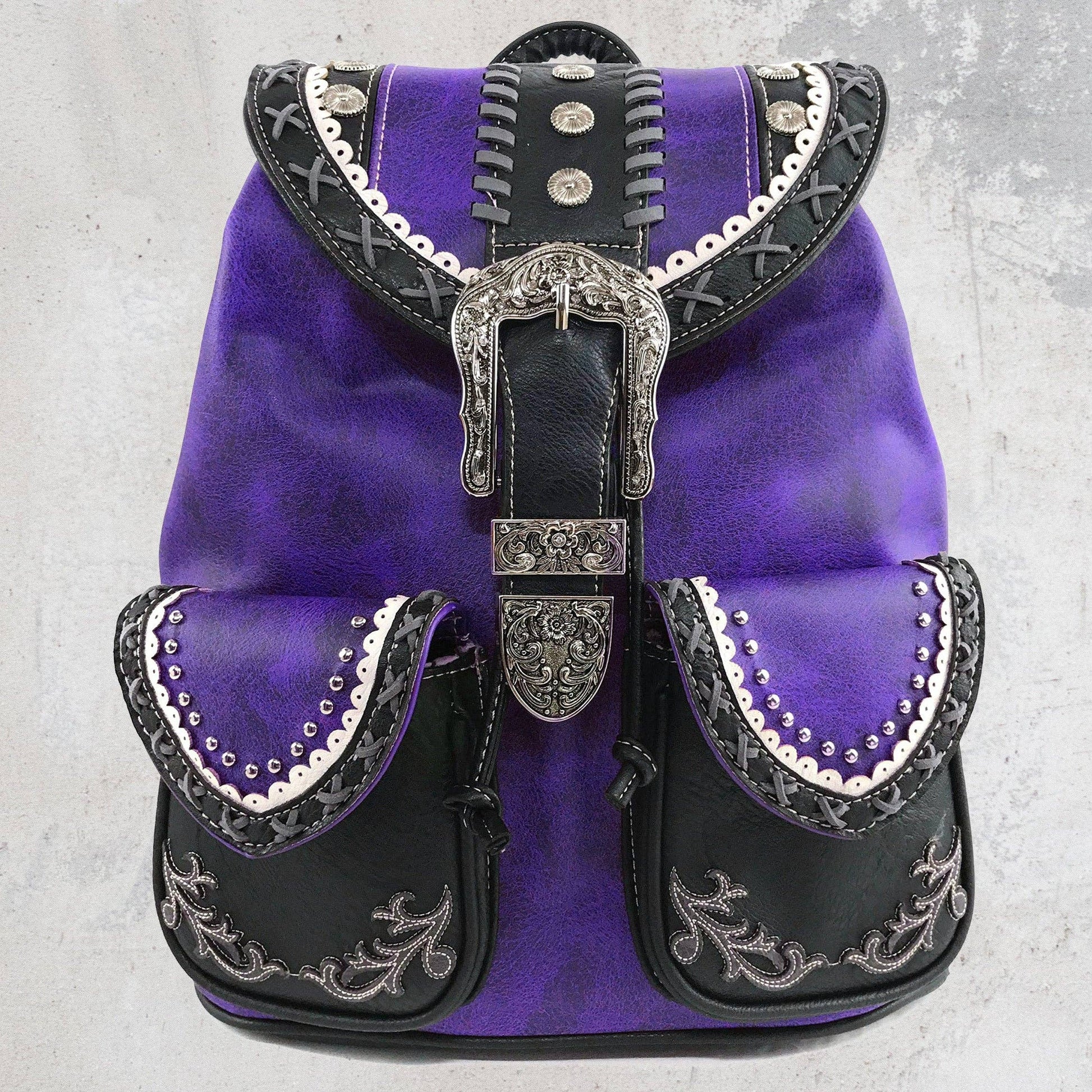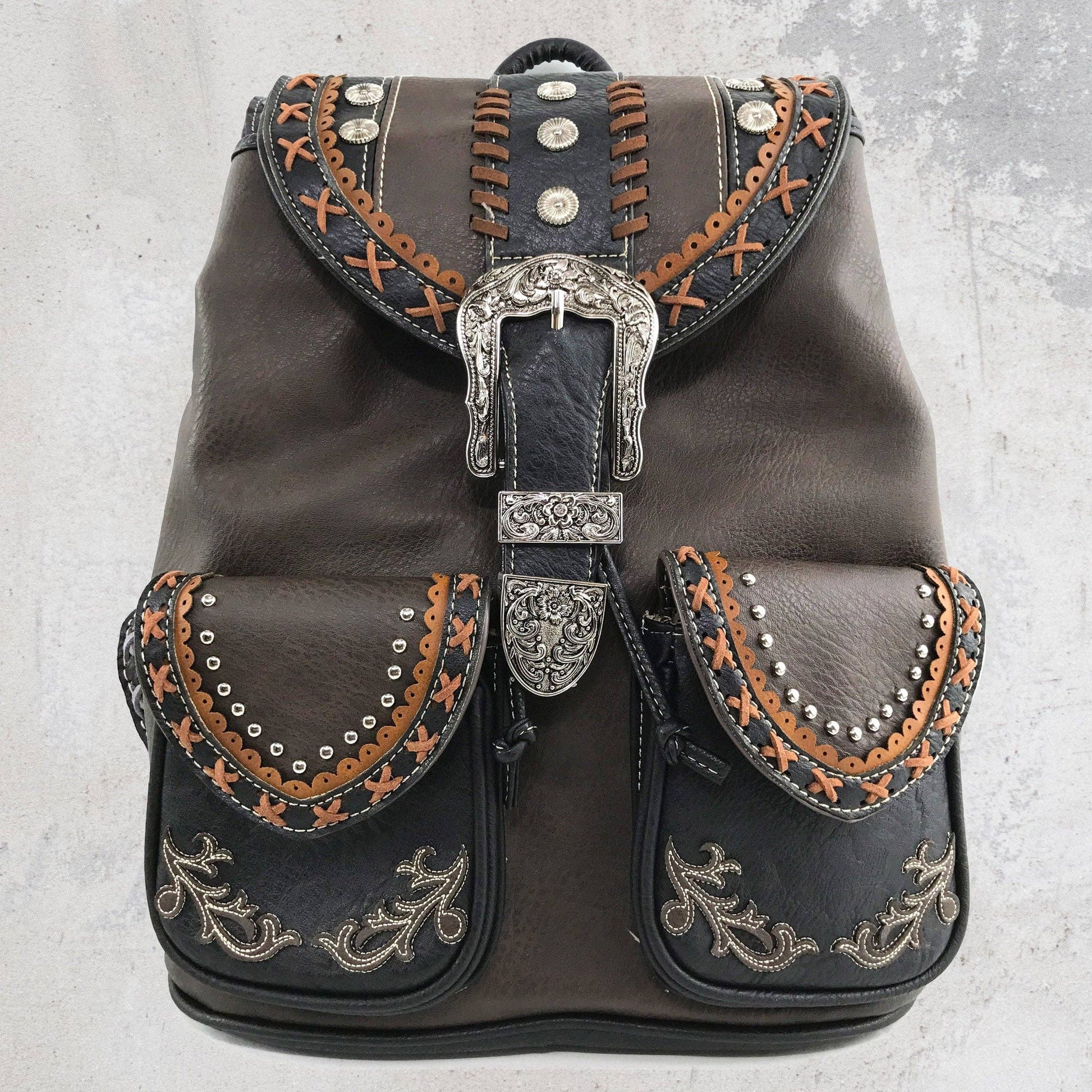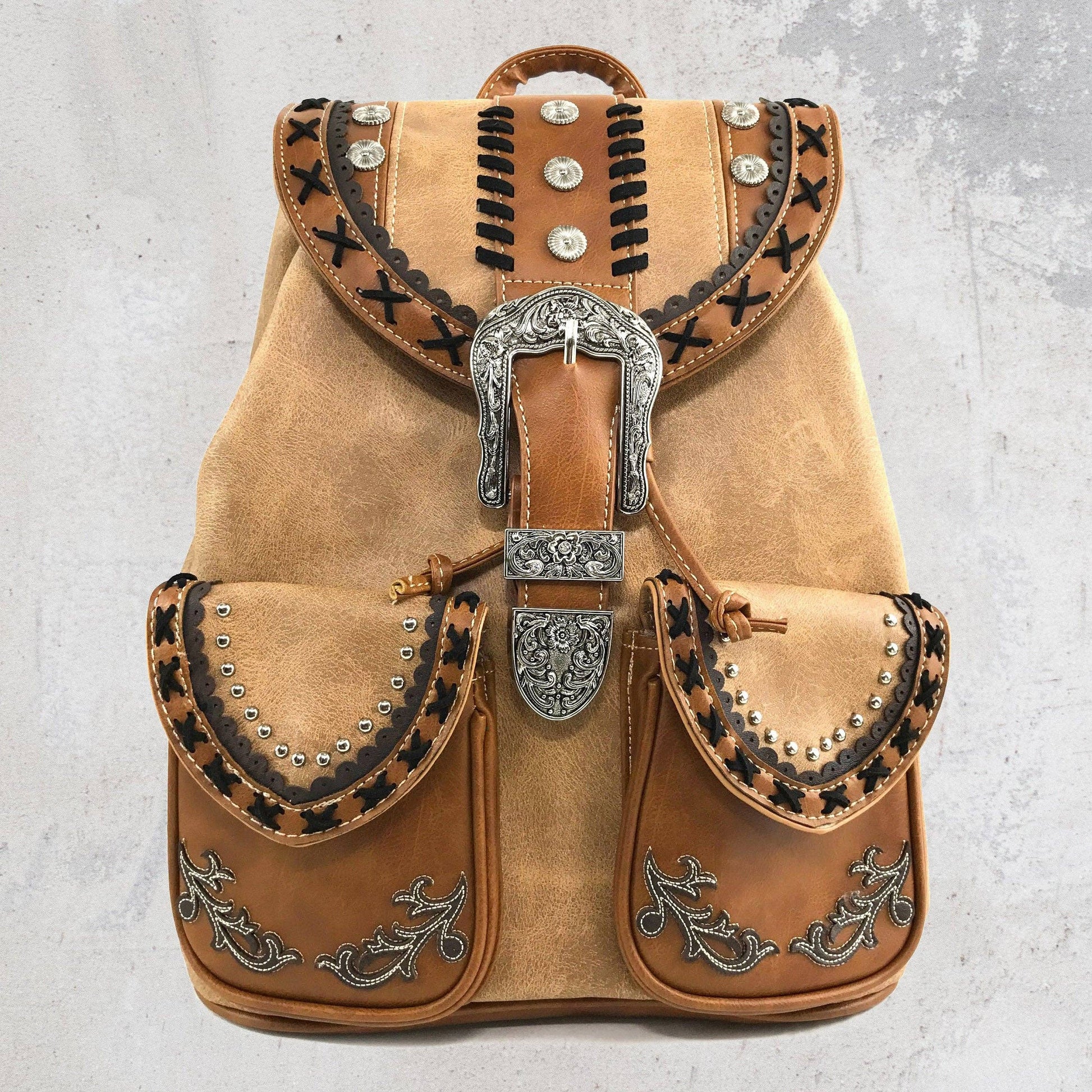 Western Leather Buckle Backpack is functional backpack, rucksack perfect for everyday use with a western country flair.