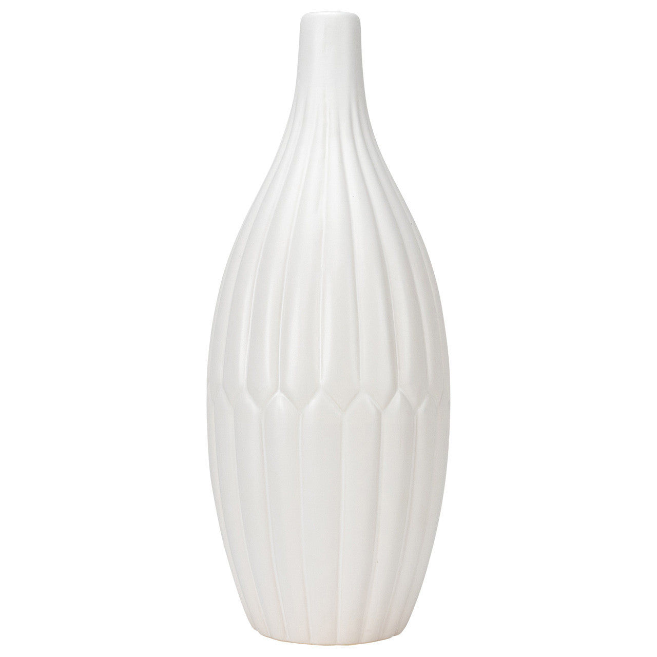 Add a touch of sophistication to your living space with the Wisnery Large Vase. This stylish stoneware vase features a matte white finish, standing tall at 15 inches with a diameter of 6 inches. The geometric vertical lines give it a modern edge, while the small narrow opening adds a unique flair. Its neutral color and versatile design make it a perfect fit for all decor styles, adding an elegant touch to any room.